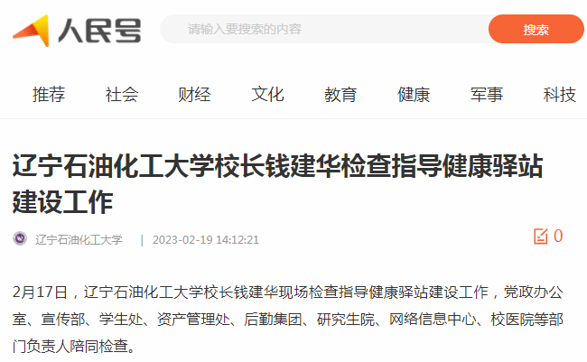 编者按:近日,辽宁日报·北国号、人民日报客户端·人民号等媒体平台对我校校长钱建华现场检查指导健康驿站建设工作进行了宣传报道。现将相关报道转载如下: