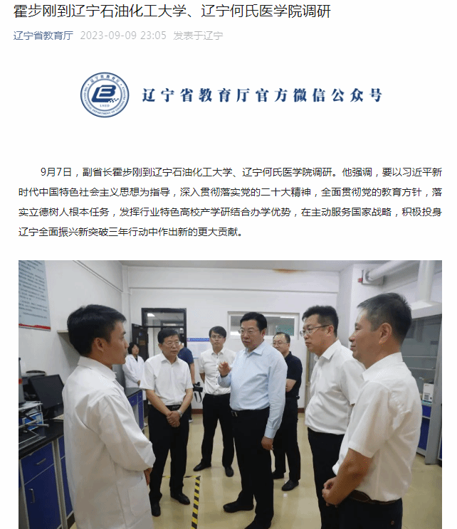 编者按:9月7日,副省长霍步刚到我校调研,实地考察了辽宁省石油化工催化科学与技术重点实验室、石油化工产业链实训培训基地,了解实验设备使用和虚拟仿真实践教学成效,询问承担国家重点项目、承接石油石化行业委托项目和科研成果转化等情况;深入学校超市、食堂实地查看食品卫生、餐饮保障等情况,考察校园软硬环境建设,与师生亲切交流,对学校近年来办学成果给予肯定。辽宁省教育厅微信公众号进行了报道。现将相关报道转载如下: