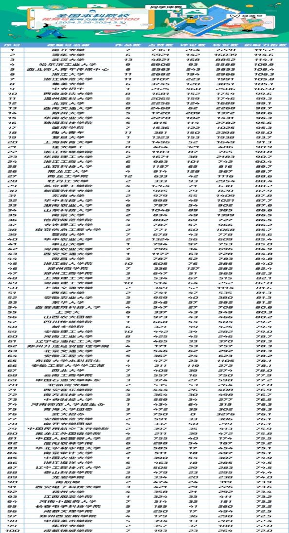 中青校媒微信公众号:全国高校(本科院校/职业院校)视频号影响力指数(2024.2.26-2024.3.3)-国产亚洲综合一区二区三区_亚洲欧美日韩中文天堂_尤物在线观看视频不卡无码_国产最新精品亚洲2025不卡_亚洲成Av人在线观看片水蜜桃