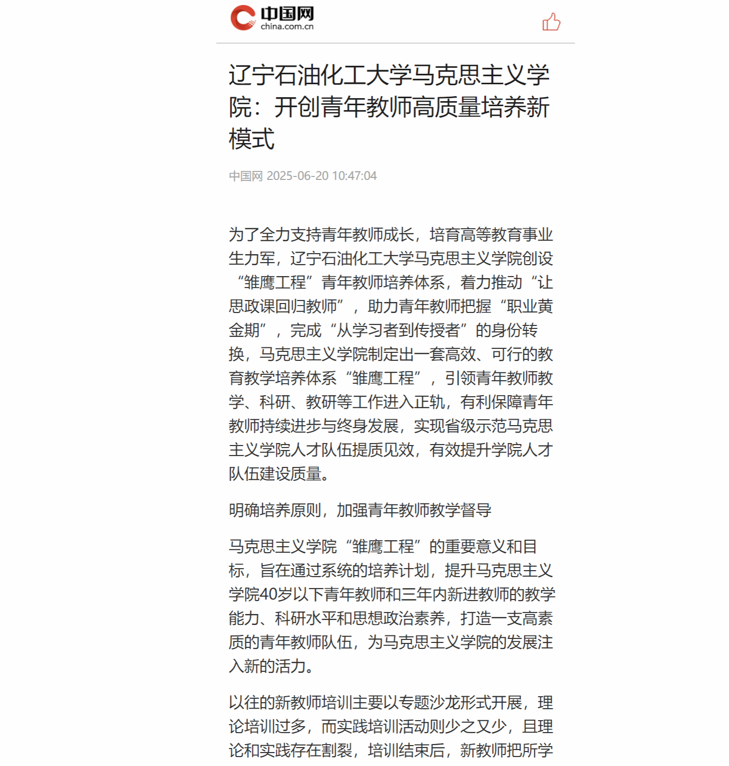 编者按:近日,中国网、人民教育在线、中华网等媒体平台对我校马克思主义学院刘向维老师撰写的文章《国产亚洲综合一区二区三区_亚洲欧美日韩中文天堂_尤物在线观看视频不卡无码_国产最新精品亚洲2025不卡_亚洲成Av人在线观看片水蜜桃马克思主义学院:开创青年教师高质量培养新模式》,进行了转载报道。现将相关报道转载如下: