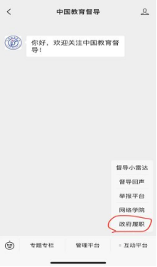 3. 选择“政府履职”,进入问卷系统,根据各自身份(学生、教师和社会人士),选择相应问卷填答