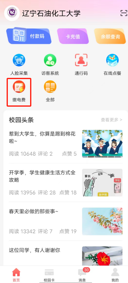 学校将于2024年9月1日起,对第二、三、四、五、六、七、八学生公寓以及男、女高层公寓,启用智能电控系统。现将新电控系统缴电费方式通知如下:
